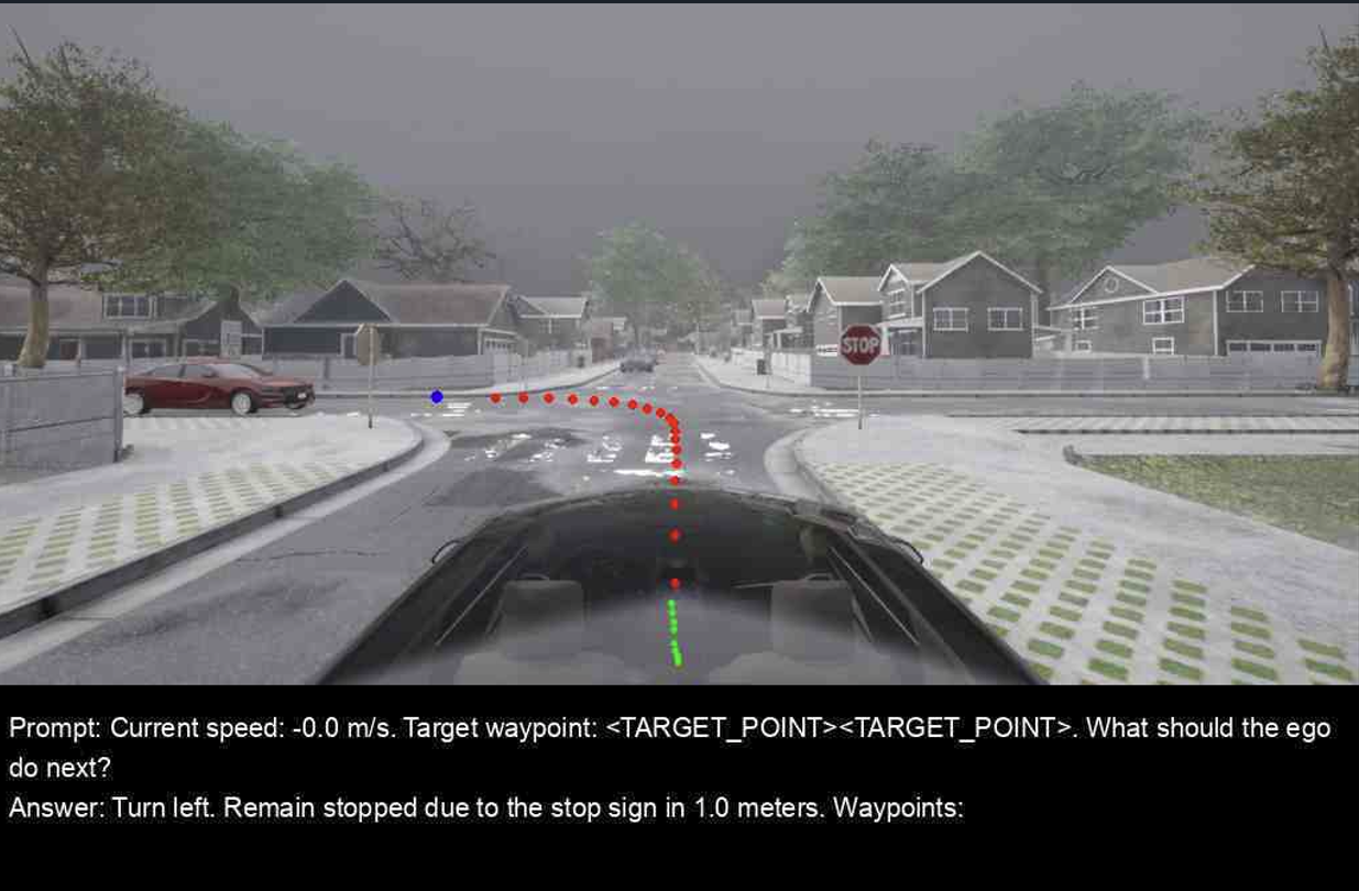 但是数据再有问题,simlingo 过拟合也是不争的事实。在这种场景下做这种推理可以说是睁着眼说瞎话了,有些浪费掉训练很好的 action 部分。所以还是有必要加强 resoning 的能力(simlingo 用 1B 模型,做 reasoning 也是强人所难了)。